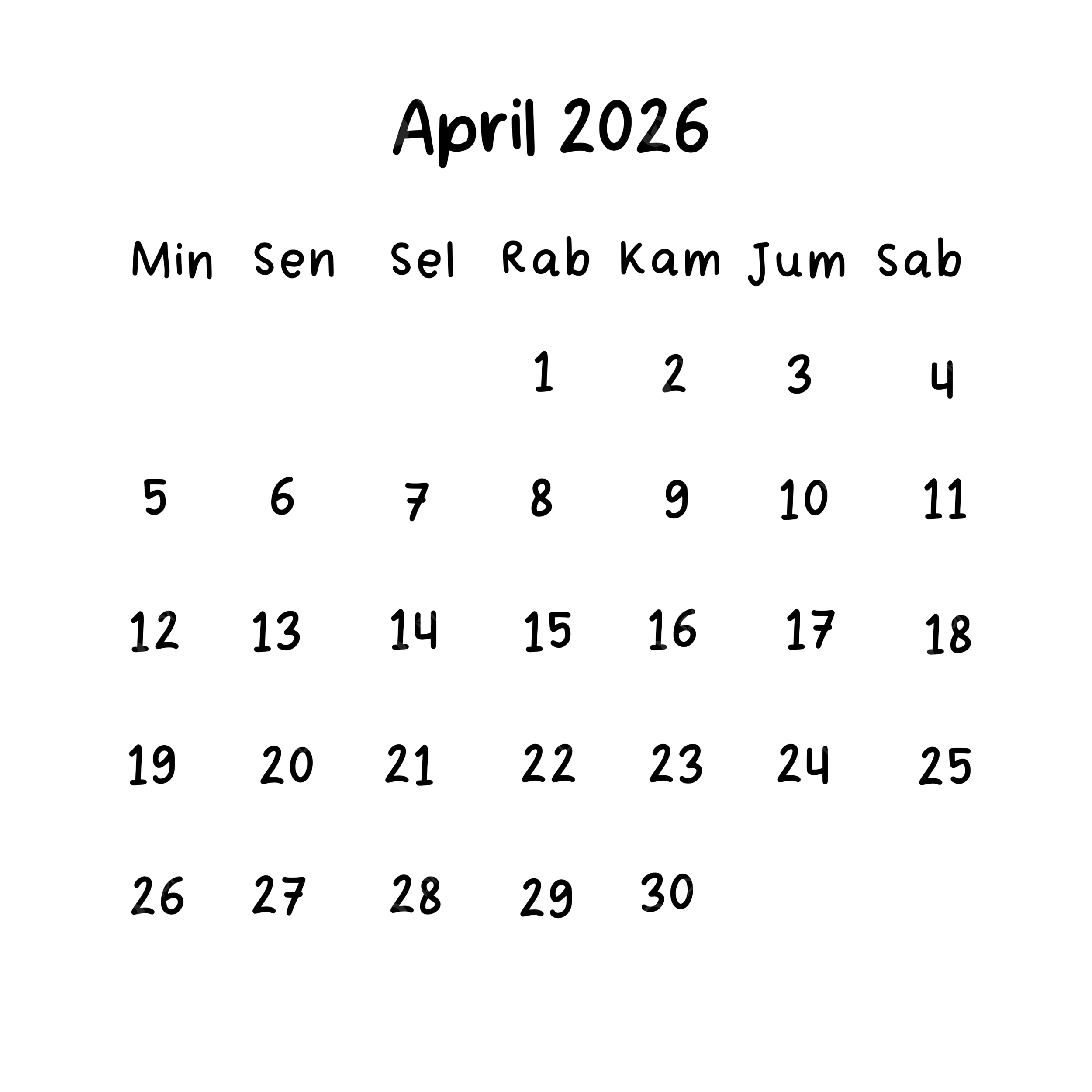 April 2026 Plain Calendar In Indonesian April 2026 Calendar PNG Transparent Clipart Image And PSD File For Free Download