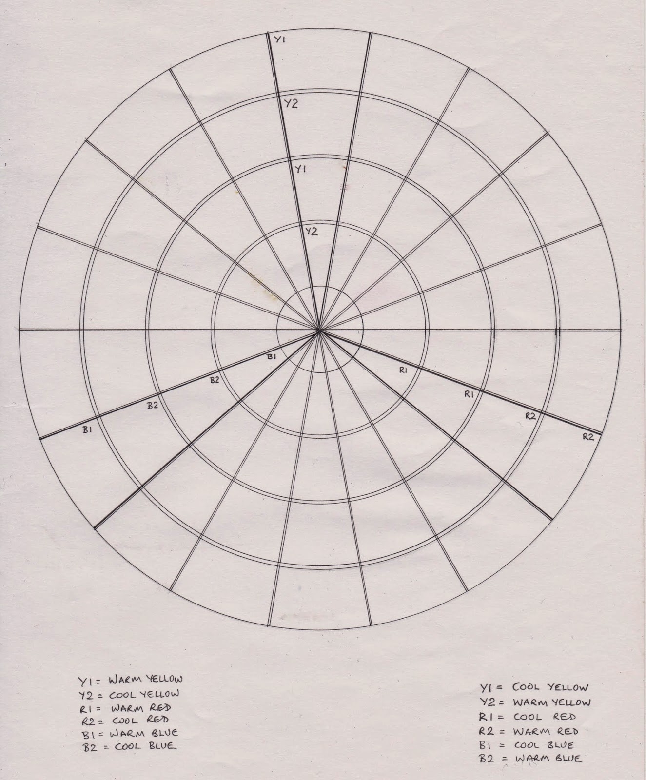 Jane Blundell Artist Warm And Cool Primary Colour Wheel With Template