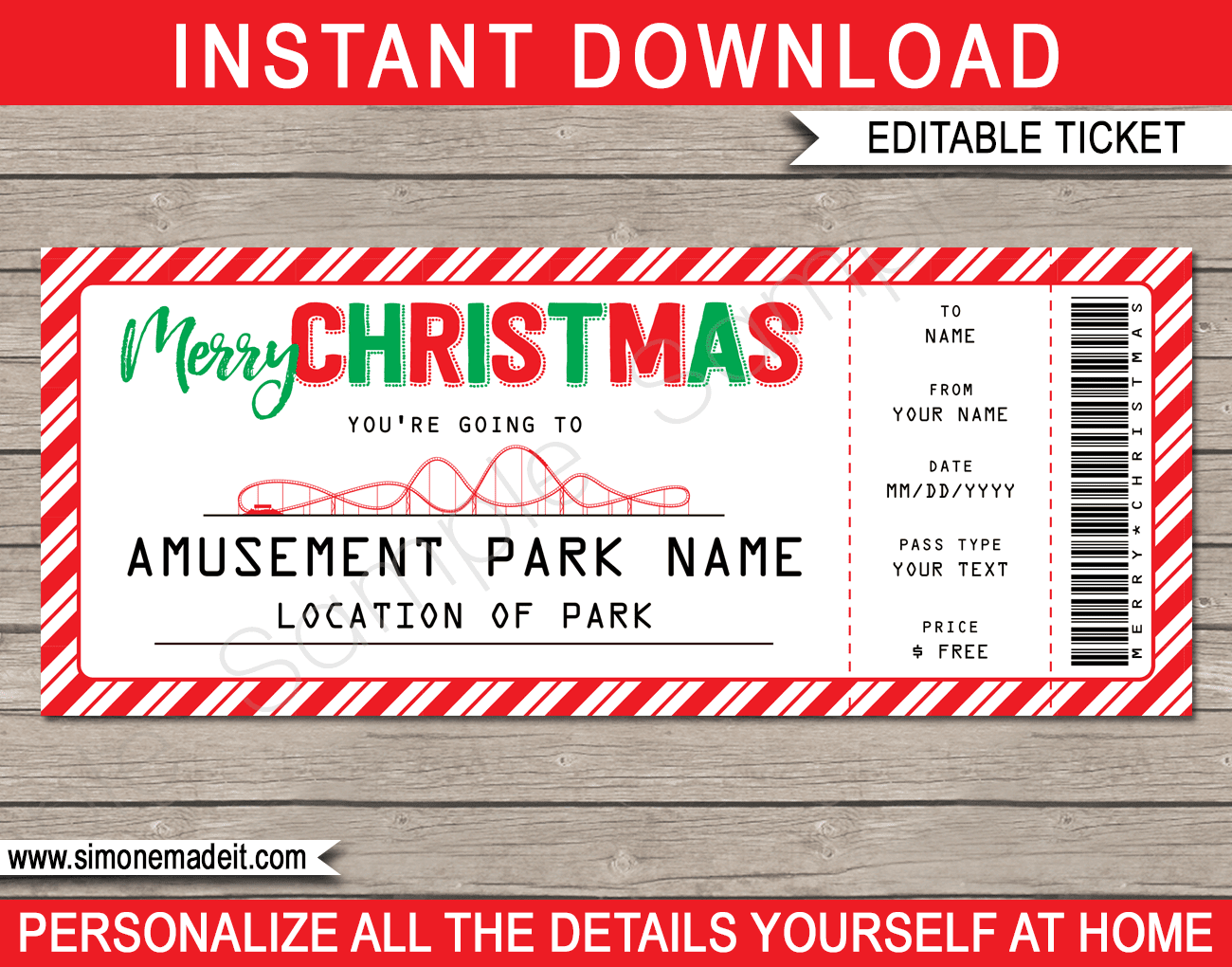 Christmas Theme Park Ticket Template Printable Gift Voucher
