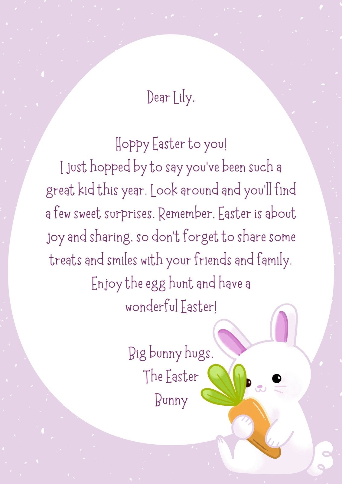Personalized Easter Bunny Letter Free Printable Template