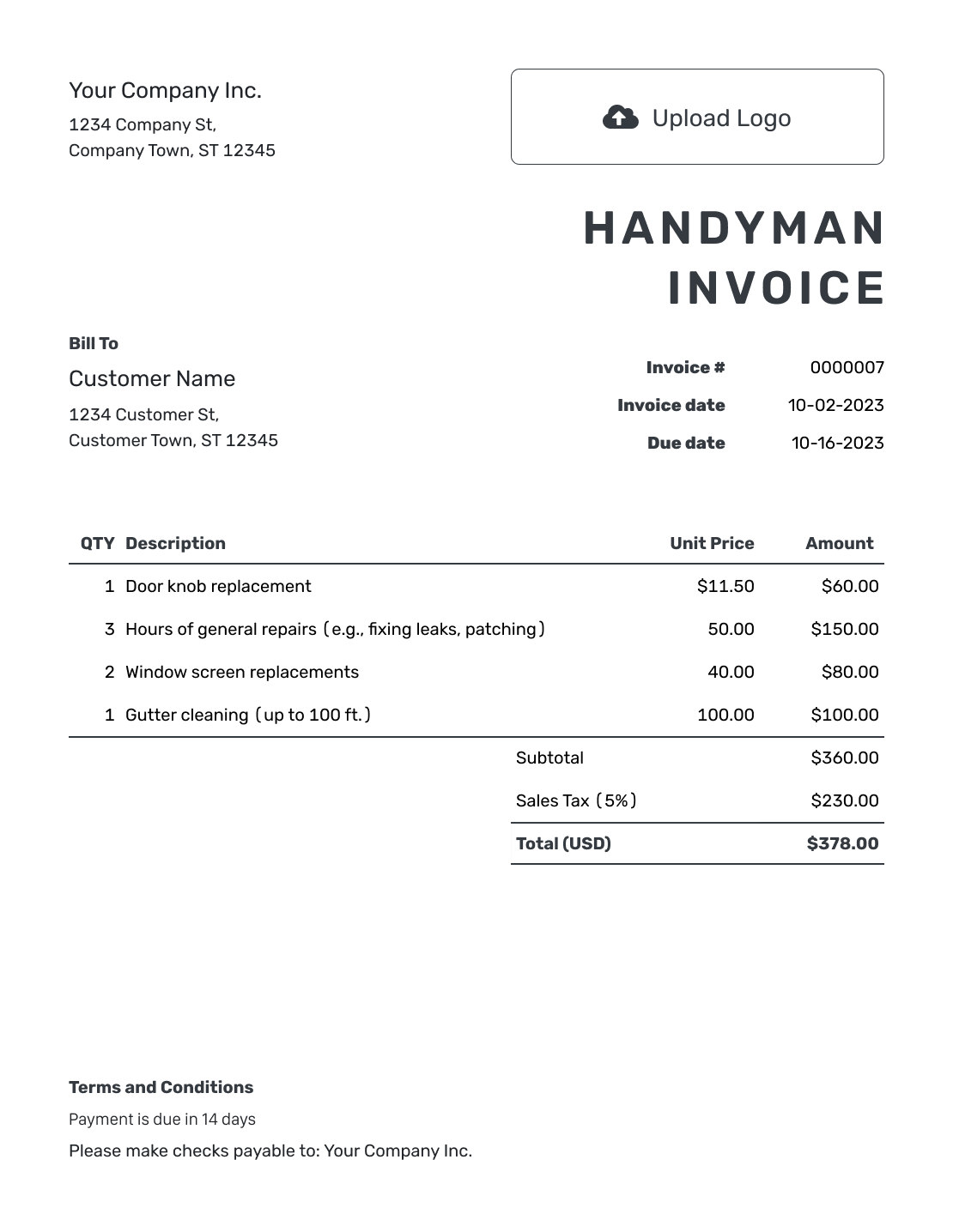 Free Handyman Contractor Invoice Template PDF Word EForms