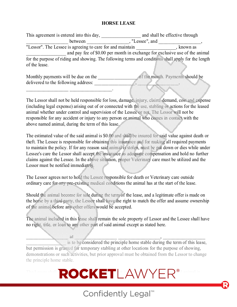 Free Horse Lease Make Sign U0026 Download Rocket Lawyer