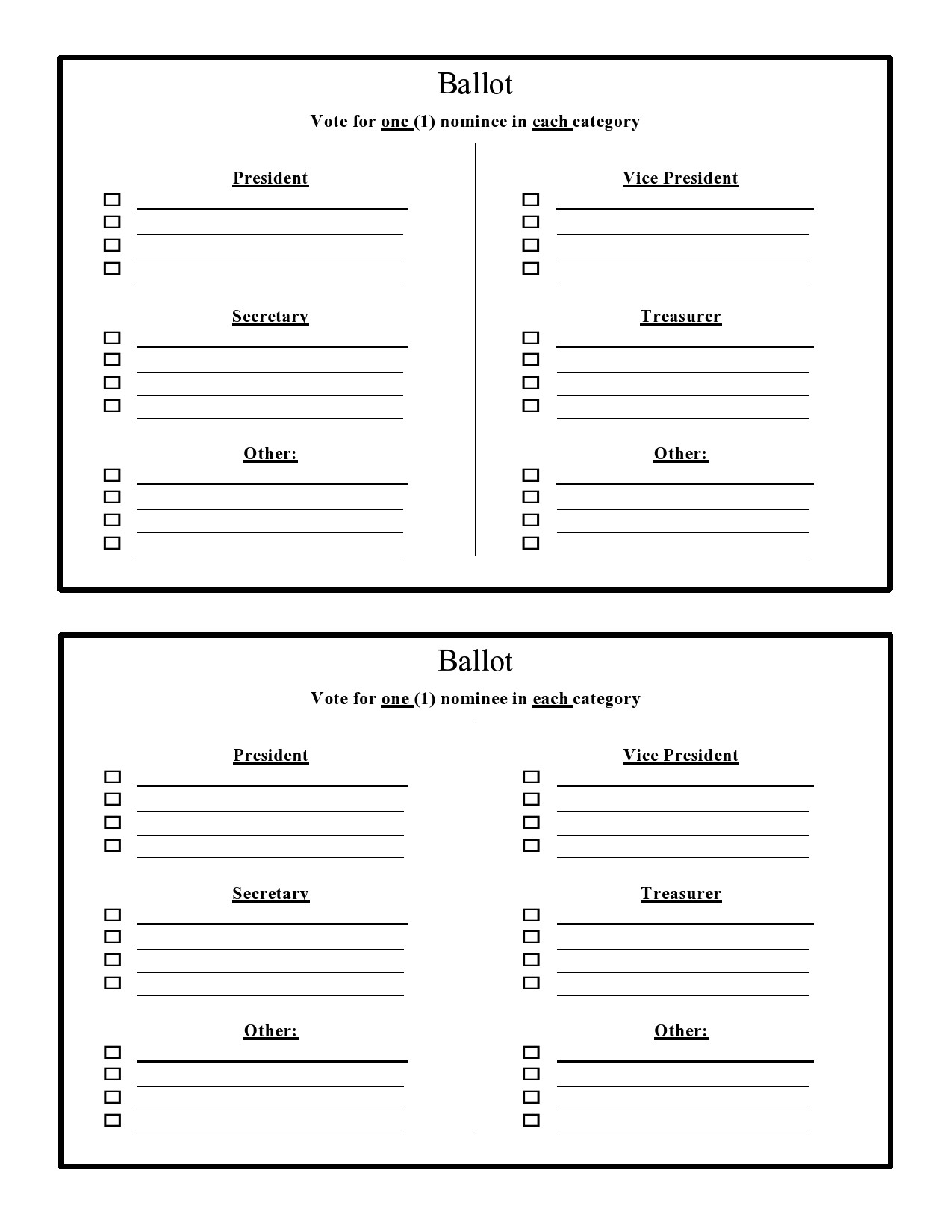 Are you looking for free printable voting ballots templates for your upcoming event or election? Look no further! We have a variety of templates available that you can easily customize to suit your needs.